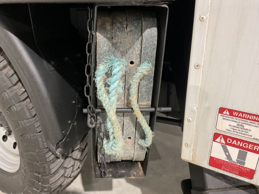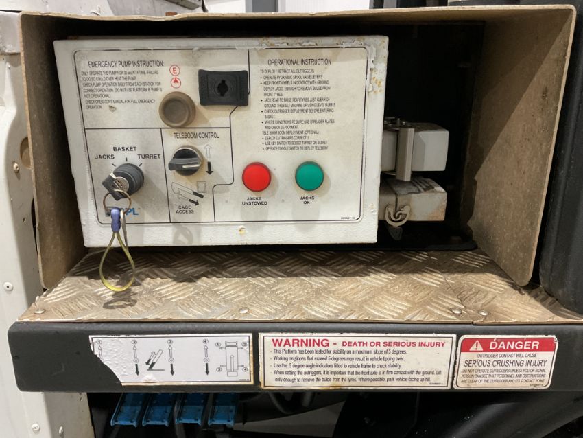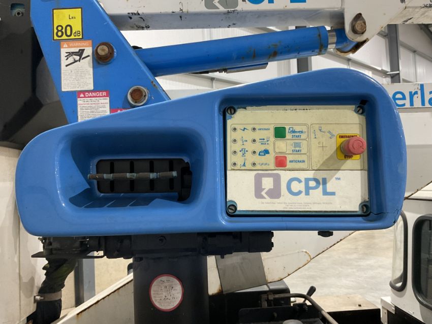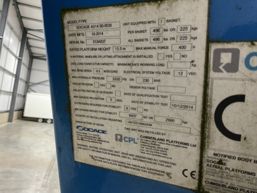 Fitted CPL/Cumberland Platform ltd 13.5m height access platform, 225kg basket capacity, 4 x hydraulic stabiliser legs, diverter valve to front winch etc.