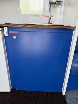 Kitchen with sink, fridge, storage lockers etc