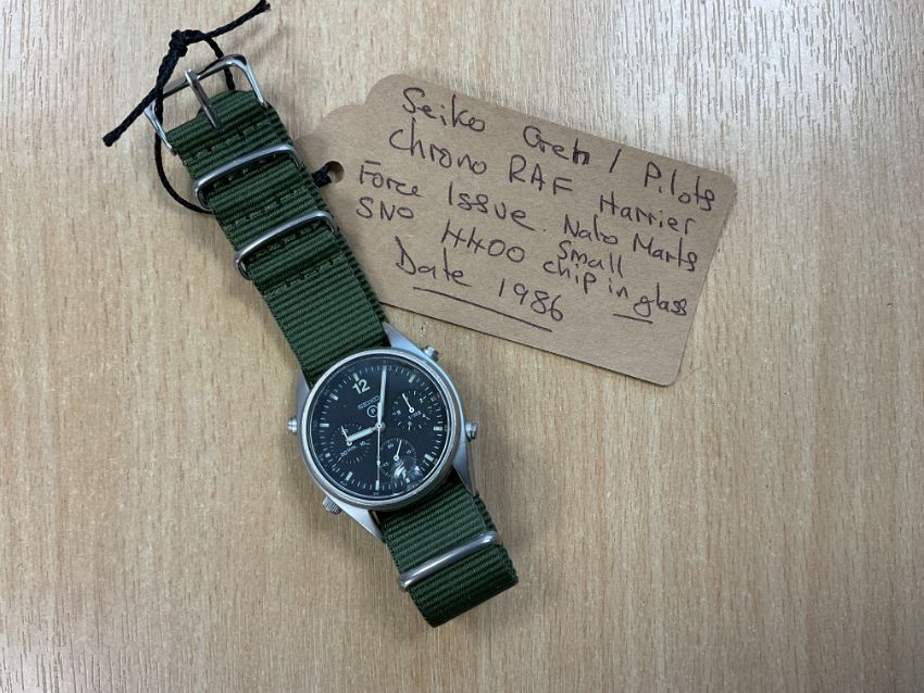 Seiko Gen 1 Pilots Chrono RAF Harrier Force Issue, Nato Marks, Sn° 4400, Date 1986, *Small Chip in Glass* from MOD
