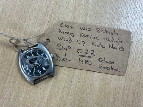 CWC W10 British Army Service Watch Wind Up, Nato Marks, Sn° 022 Date 1980, Glass Broke, from MOD