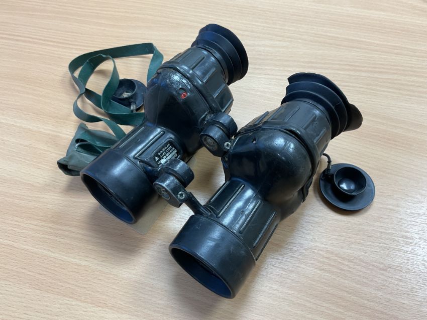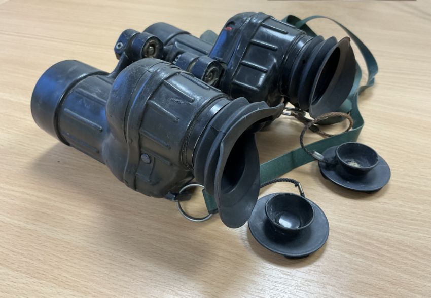 1x Pair of British Army Avimo 7x42 L12A1 Self Focusing Binos c/w Filters, Date 1980, Falklands War Issue, from MOD