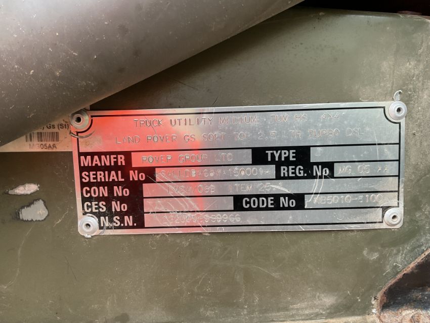 The goods are located at Witham Specialist Vehicles Ltd, Honeypot Lane, Colsterworth, Lincs, NG335LY. Please consult the website www.mod-sales.com for opening times.