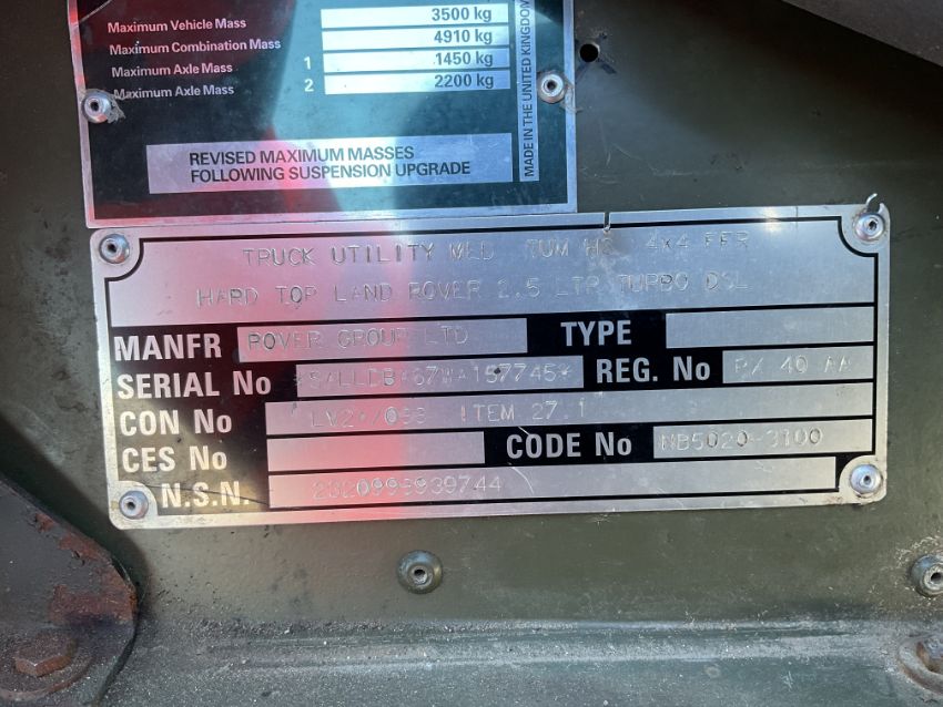 The goods are located at Witham Specialist Vehicles Ltd, Honeypot Lane, Colsterworth, Lincs, NG335LY. Please consult the website www.mod-sales.com for opening times.