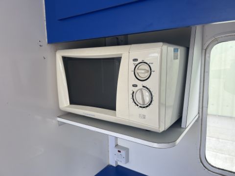 Kitchen with sink, microwave, storage lockers etc