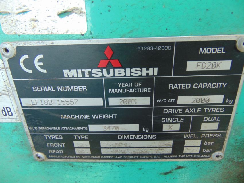 You are bidding on a Mitsubishi FD20K Counter Balance Diesel Forklift.