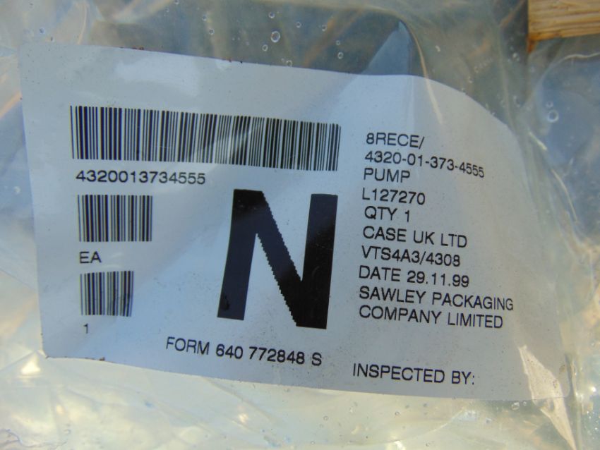 You are bidding on Direct from the UK Ministry Of Defence a New Unused Case 721 Hydraulic Steering Pump P/No L127270.