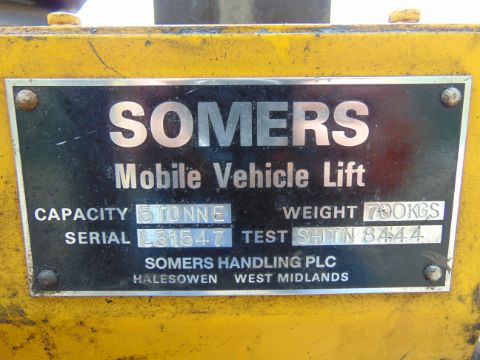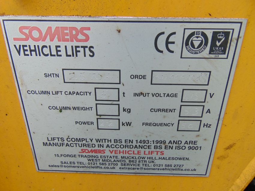 This Set of 6 Somers 5T Mobile Column Vehicle Lifts have not been tried or tested by us and do not come with a test certificate, warranty or guarantee.
