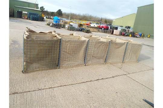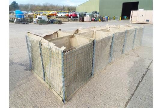 You are bidding on a 5m x 1.6m x 1m Hesco Mil 31311 10 Section Defensive Barrier. They are unissued direct from reserve stores as shown in the photographs.