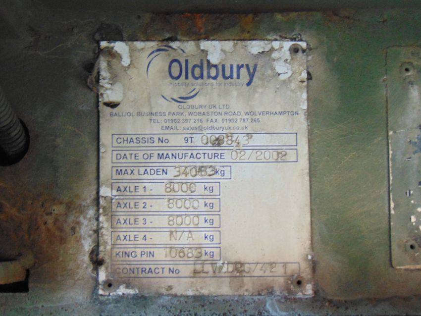 You are bidding on just released from the UK Ministry of Defence a 2002 Oldbury Tri Axle Sliding Deck Plant Trailer.