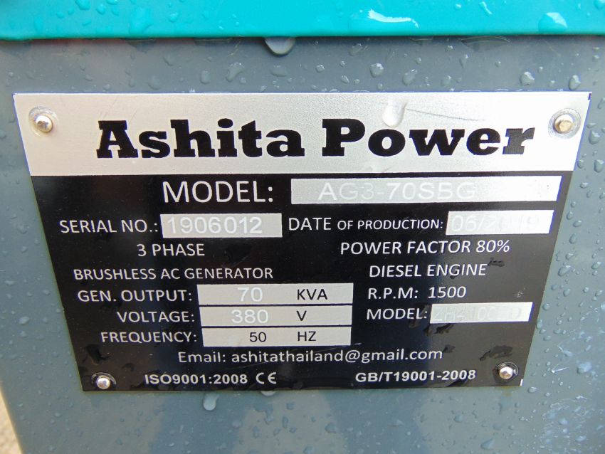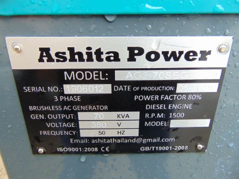 You are bidding on an UNISSUED WITH TEST HOURS ONLY 70 KVA 3 Phase Silent Diesel Generator Set. This generator is 3 phase 50 Hz and shows test hours only.