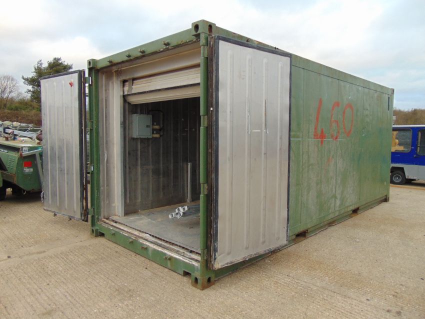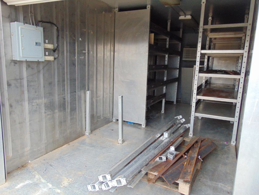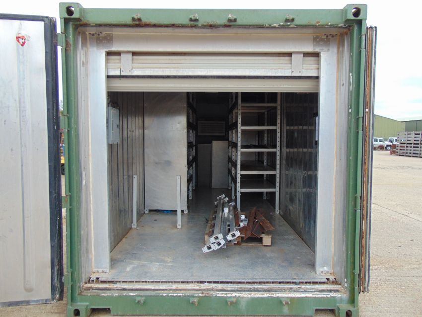 You are bidding on a 20' ISO Shipping Container C/W Stainless Steel Interior Lining, Internal Racking System, Internal Lights, Friedrich Wallmaster Air Conditioning Unit, Rollert Shutter Internal Door, Forklift pockets and Full Opening Swing Cargo Doors.