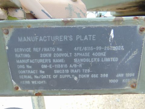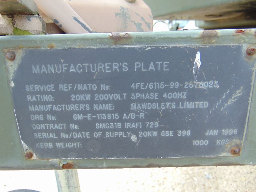 You are bidding on a Ex Uk Royal Air Force Trailer Mounted 25 KVA Generator.