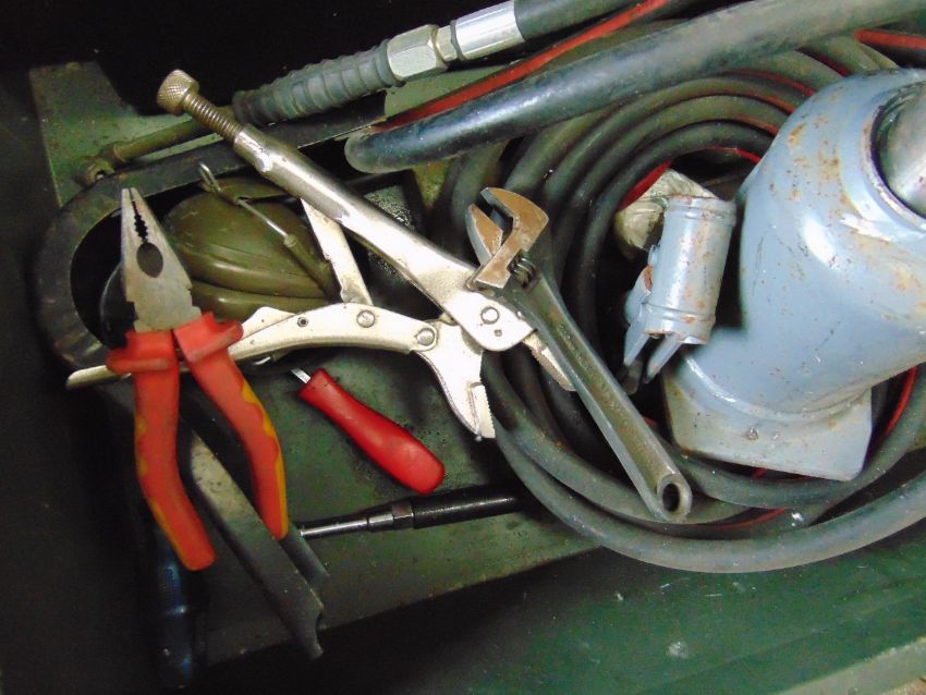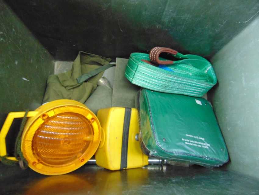 You are bidding on a Mixed Stillage including Tools, Jacks, Tow Strops, Fire Extinguishers for Land Rovers, Trucks etc.