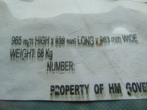 Terms: Full payment must be made within three days and removal within seven days otherwise storage charges will apply at GBP 28 per day **THERE ARE NO EXCEPTIONS**. This is a legally binding contract to purchase. If you are not sure please do not bid. We are unable to cancel your purchase after the auction closes. For further information or to view any other items at Witham MoD, contact Simon Chapple in sales on 01476 861361 / 07788610730 or email onlineauctions@mod-sales.com