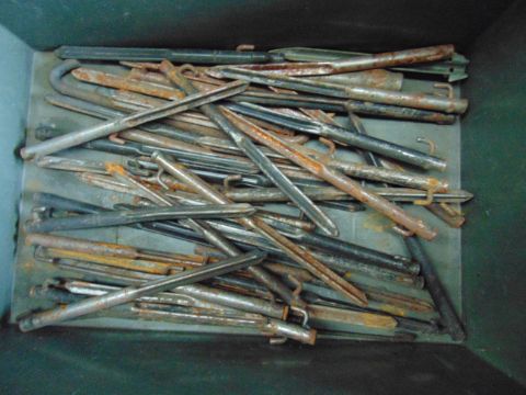 You are bidding on a Mixed Stillage including Tent Pegs, Earthing Spikes etc.