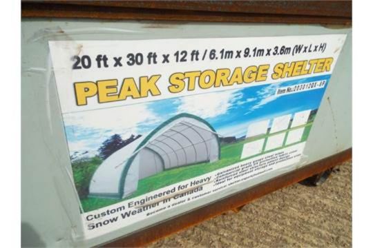 This Heavy Duty Peak Storage Shelter 20'W x 30'L x 12' H P/No 203012QX-8P is unissued new old stock and is .