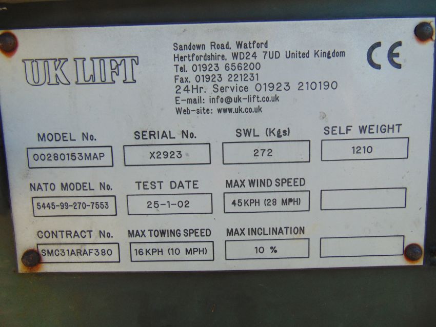 You are bidding for an RAF Maintenance Unit UK Lift Hydraulic Access Platform SWL 272 Kgs.