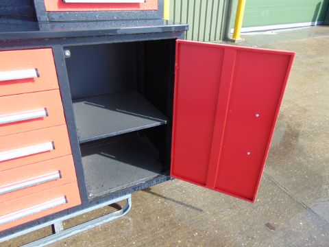 You are bidding on a Unused 7' Work Bench/Tool Cabinet, 18 Drawers, Lock Anti Slip Liners.