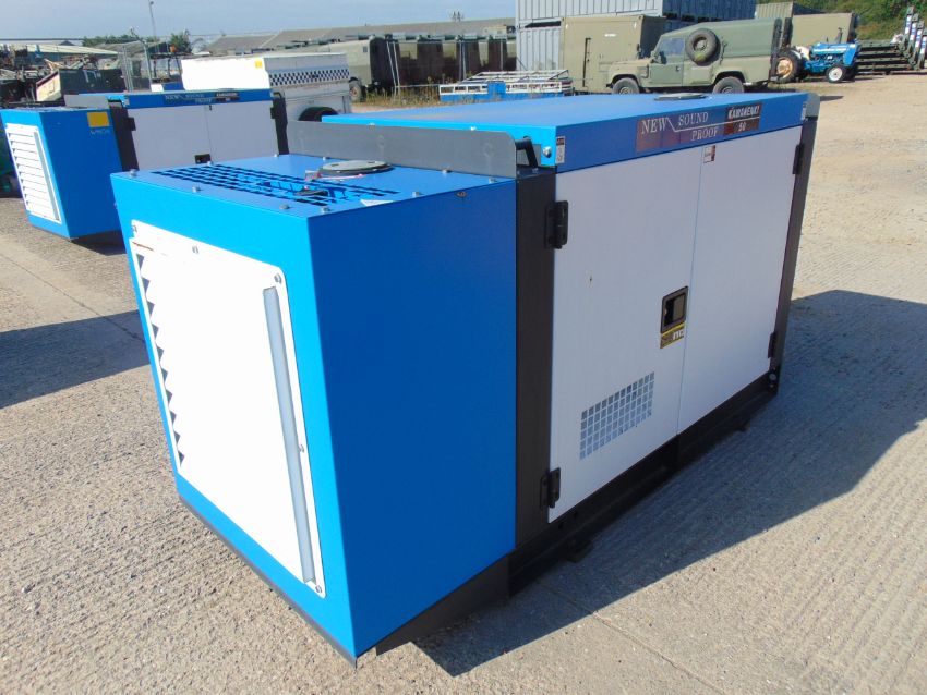 You are bidding on an UNISSUED 50 KVA 3 Phase Silent Diesel Generator Set. This generator is 3 phase 230/400 volt 50 Hz.