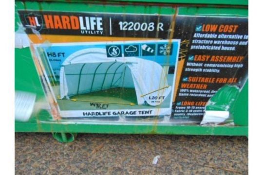 This Heavy Duty Hardlife Garage Tent 12'W x 20'L x 8' H P/No 122008R is unissued new old stock and is sold as seen.