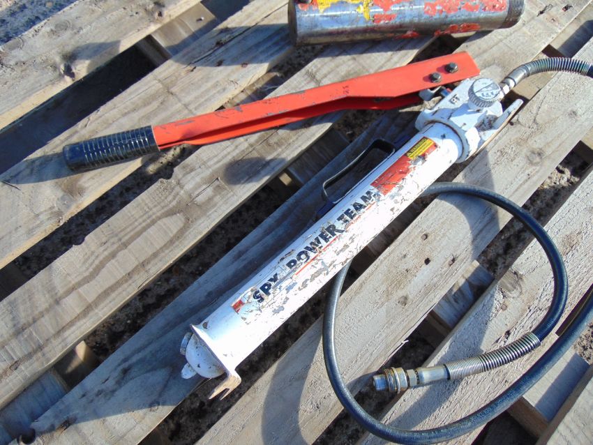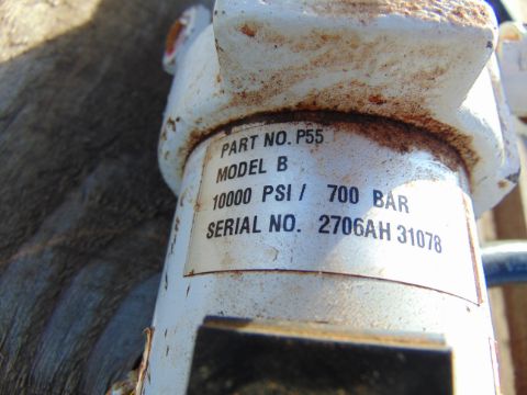 You are bidding on Power Team P55 Hydraulic Hand Pump - 10000 PSI / 700 Bar c/w Hydraulic Ram.