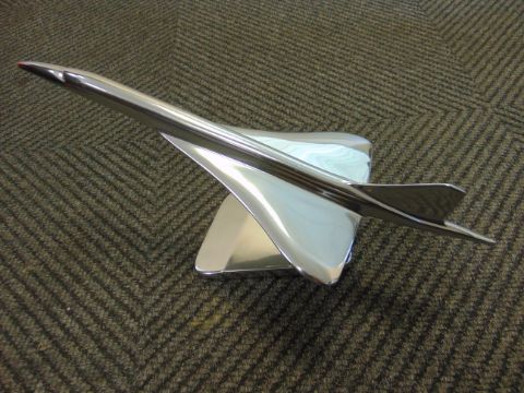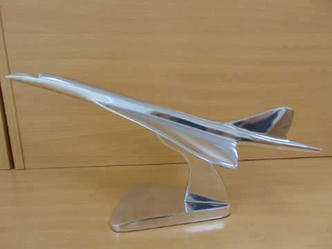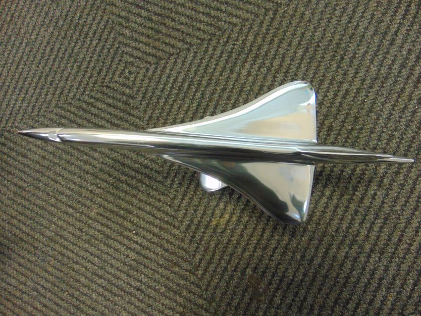 You are bidding for a beautiful polished Alluminum desk top mode of a Concord in flight on stand.