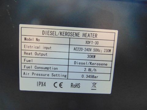 You are bidding for a New Unissued Diesel/ Kerosene XDFT-30 30 KW workshop heater.