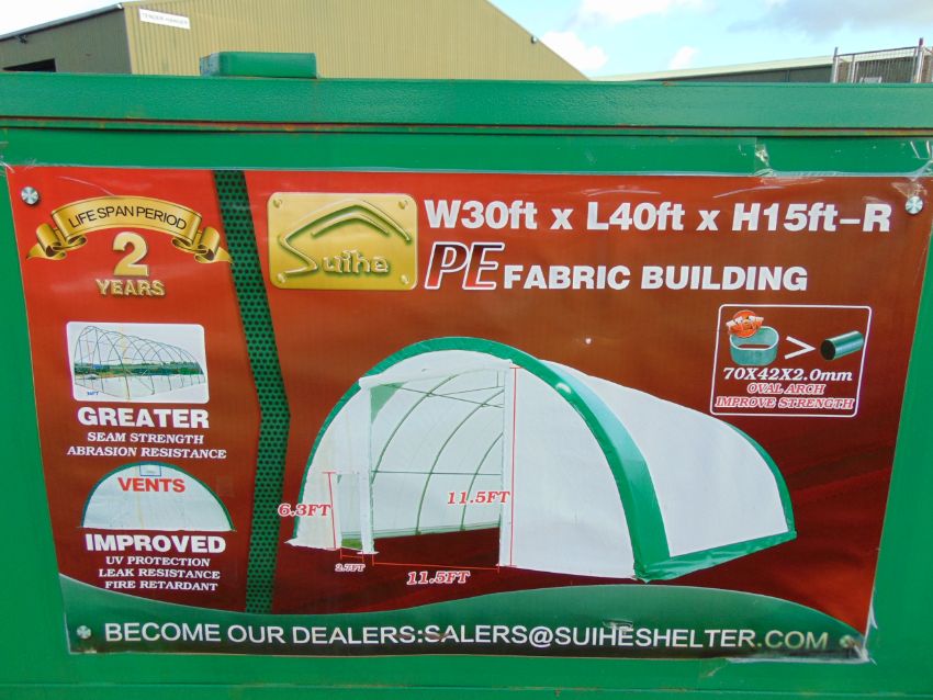 This Heavy Duty Storage Shelter 30'W x 40'L x 15' H P/No 304015R is unissued new old stock.