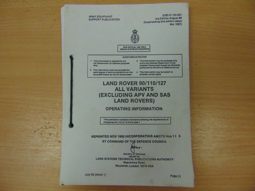 You are bidding on an Army Equipment Support Publication, Land Rover 90/110/127 all variants (Excluding APV and SAS Land Rovers), Operating Information manual.