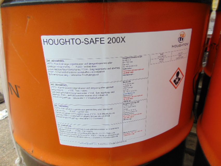 You are bidding for 4 x Unissued 205L Drums of Houghton Safe 200X Fire Resistant Hydraulic Fluid.