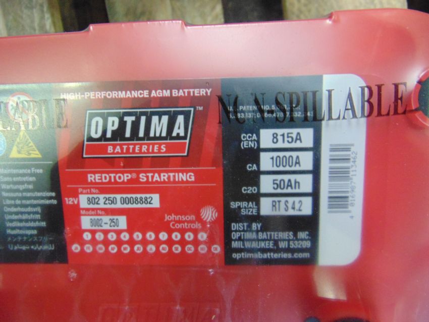 You are bidding on 2 x Unissued RTS 4.2 Optima Red Top 12v Starting Batteries – (8002-250) RTS4.2 AGM.