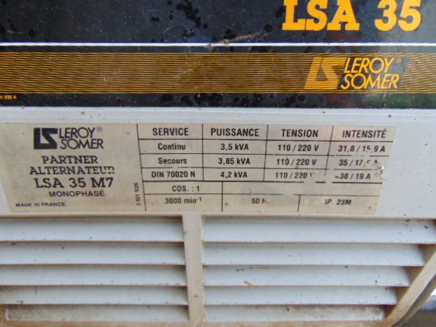 You are bidding for a Leroy Somer LSA 35 3.5KVA Petrol Generator.
