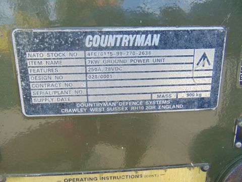 You arebidding for Countryman 7KW Ground Power Unit 250A 28 volt from R.A.F.