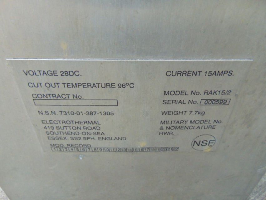 Terms: Full payment must be made within three days and removal within seven days otherwise storage charges will apply at GBP 28 per day **THERE ARE NO EXCEPTIONS**. This is a legally binding contract to purchase. If you are not sure please do not bid. We are unable to cancel your purchase after the auction closes. For further information or to view any other items at Witham MoD, contact Simon Chapple in sales on 01476 861361 / 07788610730 or email onlineauctions@mod-sales.com