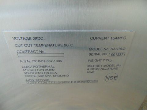 Terms: Full payment must be made within three days and removal within seven days otherwise storage charges will apply at GBP 28 per day **THERE ARE NO EXCEPTIONS**. This is a legally binding contract to purchase. If you are not sure please do not bid. We are unable to cancel your purchase after the auction closes. For further information or to view any other items at Witham MoD, contact Simon Chapple in sales on 01476 861361 / 07788610730 or email onlineauctions@mod-sales.com