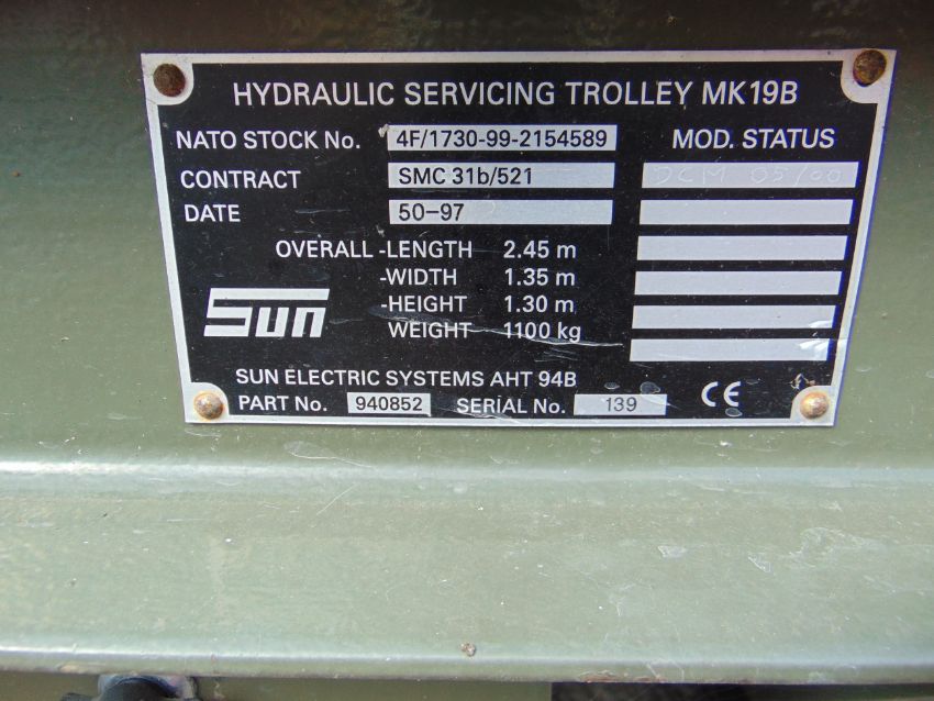 You are bidding for a Sun AHT 94B Hydraulic Servicing Trailer from R.A.F.
