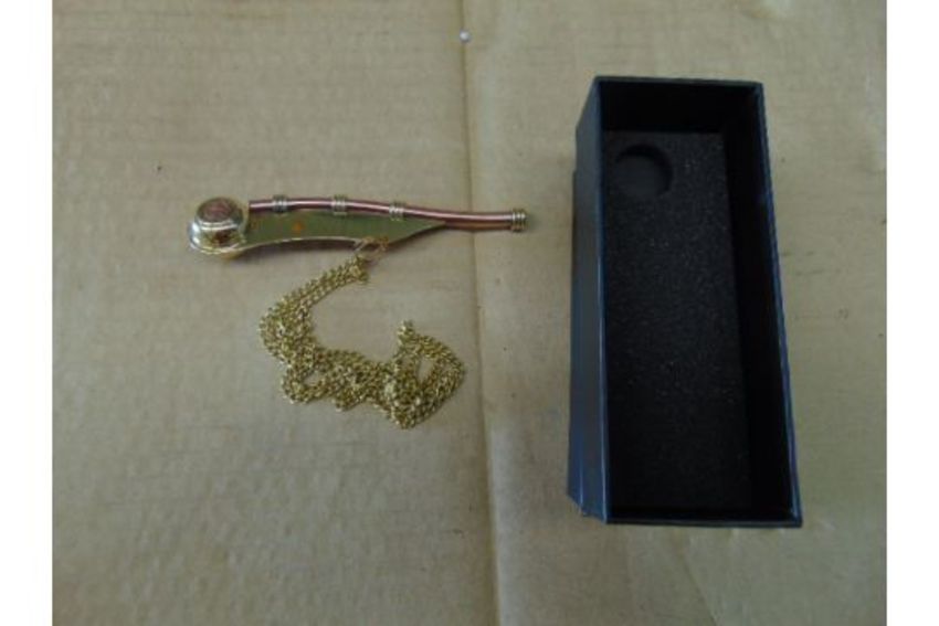 You are bidding for a Brass & Copper Bosuns Whistle with Chain.
