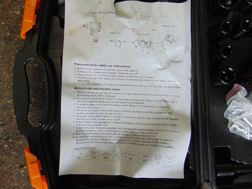 You are bidding for a 1/2 inch Drive Impact Air Wrench with sockets.