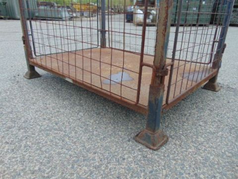 You are bidding for a Steel Stacking Stillage with removeable sides and corner posts. L132cm x W96cm x H125cm (floor to top of corner post).