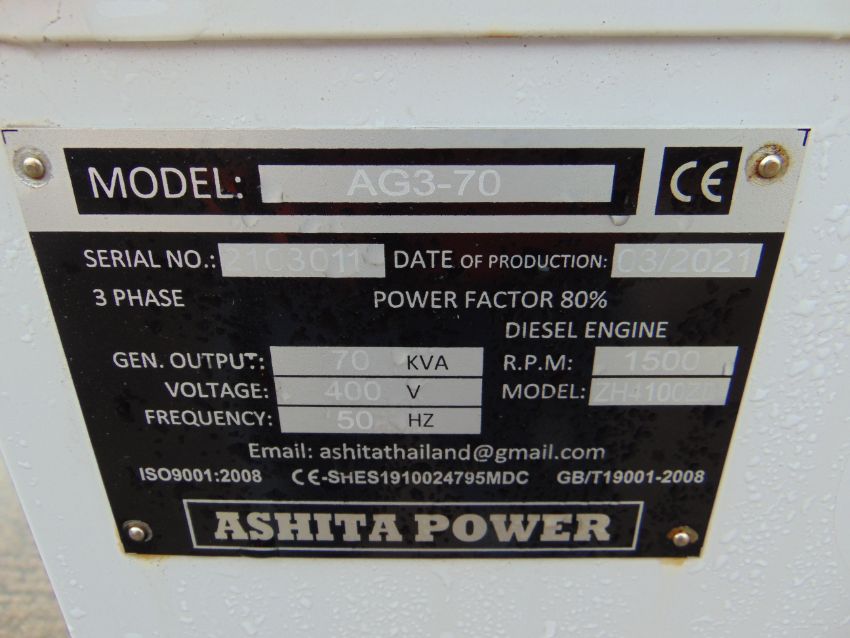 You are bidding on a 2021 UNISSUED 70 KVA 3 Phase Silent Diesel Generator Set. This generator is 3 phase 400 volt 50 Hz.