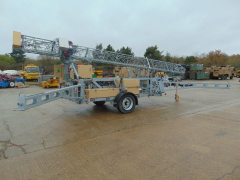 You are bidding on a Unissued Ex Reserve Sesanti Mobile Surveillance/Communications Tower 21m High Mounted on a Single Axle Trailer.