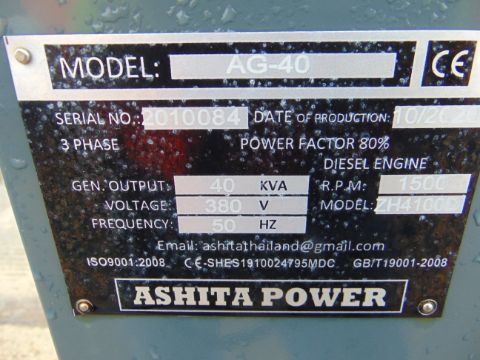 You are bidding on a 2020 UNISSUED 40 KVA 3 Phase Silent Diesel Generator Set. This generator is 3 phase 380 volt 50 Hz.