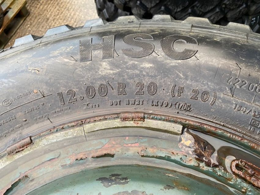 You are bidding on Qty 4 x Continental 12.00R20 HSC Construction tyres on 10 stud split rims, suitable for Mercedes 4x4 and a wide range of commercial applications.