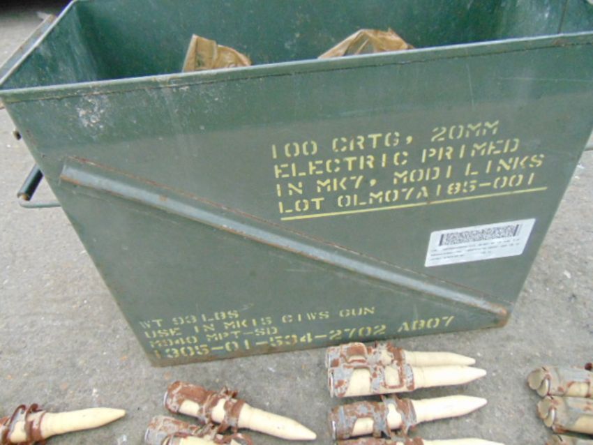 Very Rare AMMO Box containing 85 Dummy 20 mm Shells in Links as shown