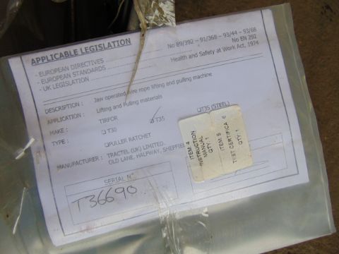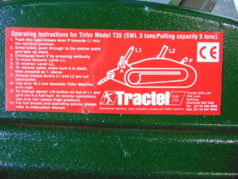 You are bidding on a Unissued Tractel T35 Tirfor Winch, with winch rope.