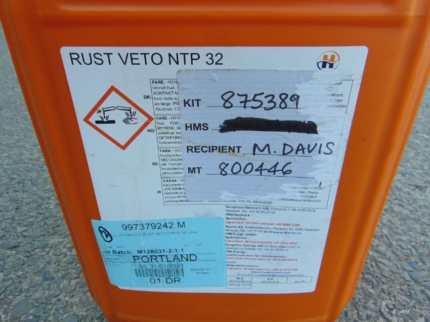 You are bidding for a 1x 20 litre Drum of Rust Veto NTP 32 is a dual Purpose Fluid designed for the commissioning and subsequent preservation of both water glycol and mineral oil hydraulic oil systems.