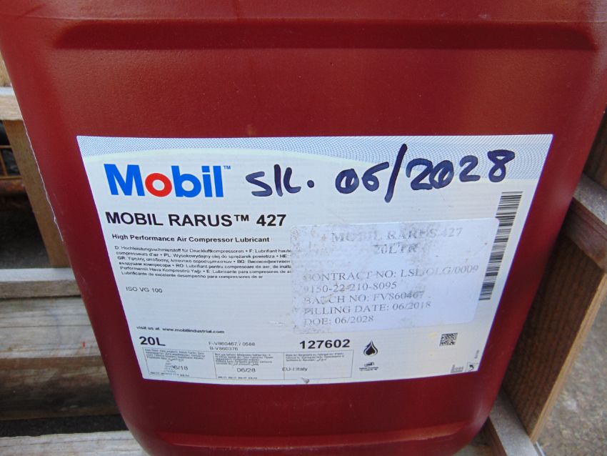 You are bidding for a 1x 20 litre Drum of Mobil Rarus 427 Premium Performance Gasless Air Compressor Lubricant.