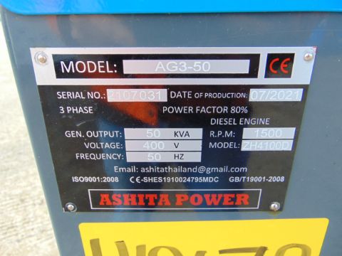 You are bidding on a 2021 UNISSUED 50 KVA 3 Phase Silent Diesel Generator Set. This generator is 3 phase 400 volt 50 Hz.