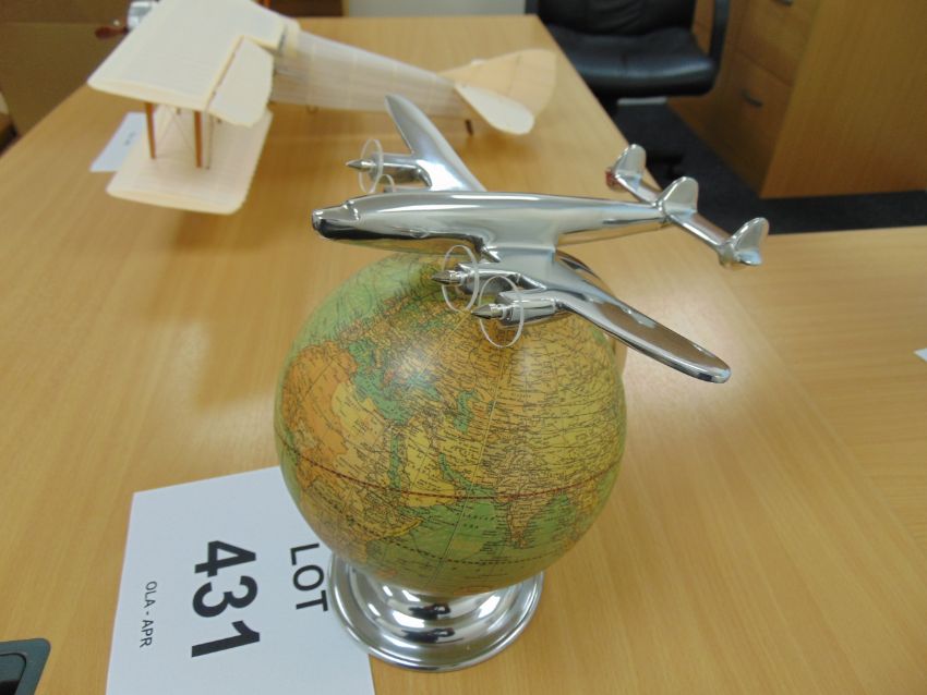 The On Top of the World, Desktop Flight is a fine quality replica by Authentic Models, both a globe and a beautiful plane. This replica plane is a nostaglic look back at the days when travel was fun.
