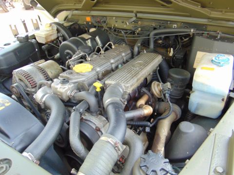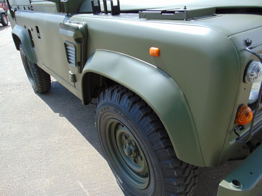 Fitted 300TDi 2.5 litre turbo Diesel engine, R380 5 speed gearbox, power steering, side mounted spare wheel, 7.50R16 Michelin XZL tyres on Wolf heavy duty rims, light guards, front steering protector guard, Jate rings, rear NATO hitch and electrics.